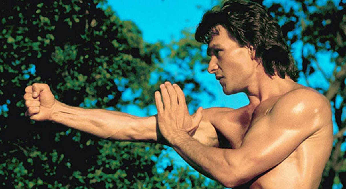 For me, Patrick Swayze exists within the bubble of Dirty Dancing. He’s perpetually Johnnie Castle with those wounded eyes and that exaggerated blue collar accent and those mobile hips. Most people remember the bits that made it into cinema immortality: “Nobody puts baby in a corner” and his strong arms making Jennifer Grey look and feel like she’s flying. But I treasure that one brief scene we get of the two lovers playing in the dance studio, before any of the plot could catch them up. Swayze is magnetic with joy in that scene and I have never wanted to see him as anyone else. So I never watched Ghost or Roadhouse and wasn’t prepared to care about the Jake Gyllenhaal remake that Amazon released earlier this year. But one rainy rare day without a basketball game, I allowed my vague interest in Gyllenhaal to lead me to that film, and through that, back to Swayze.